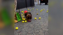 Airport’s explosive detection dog showered with tennis balls at retirement