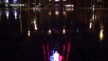 Blackpool Tower lit up red, white and blue in solidarity with Manchester