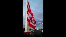 Two Vets, one young...one old, argue the act of displaying the US flag upside-down. This was a supposed vigil for anti-military torturing. Young Veteran gets support from a passerby.