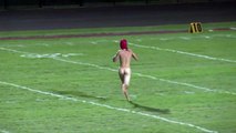 Ce streaker avait prévu son coup lorsqu'il est arrivé tout nu sur le stade du lycée Seminole en Floride. Après avoir traversé le terrain en long, il se fait courser par un garde de la sécurité mais va rapidement lui échapper. Regardez comment !