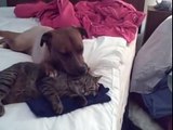 Nice dog .vs. Cute cat ( a kitty ) - Lovely Licking !!