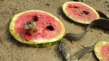 Amazing Fishing Technique With Watermelon- Fish Come Out From Many Hole - Fruit Fishing Video.