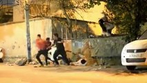 Man has afraid from seeing to some strange on road