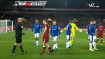Firmino and Holgate going at it after Firmino ends up in the crowd