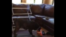 In this silly pet clip, a chocolate lab has his head stuck in a cracker box and needs some help getting free!
