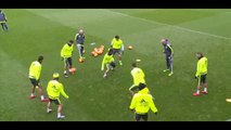 Entrenamiento 12/02/2016 Las risas de James con Cristiano por una jugada