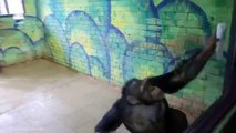 Cam silen temizlik görevlisi ile oynayan kedi