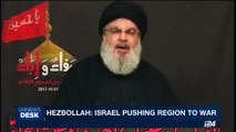 i24NEWS DESK | Hezbollah: Israel pushing region to war | Sunday, October 1st 2017