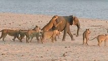 Young Elephant Survives Attack By Lion Pack