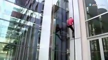 Le Spider-Man français alias Alain Robert escaladé 2 tours dans le quartier des finances à Paris, La Défense.