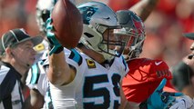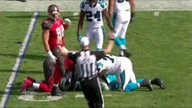 Panthers safety Roman Harper recovers fumble by Saints Ben Watson for the first turnover of the game.