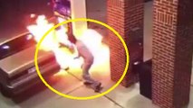 CRAZY MAN SETS PETROL STATION ON FIRE TRYING TO KILL SPIDER