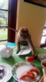 With a baby around her waist, this mother monkey makes off with a very well-rounded meal during breakfast time in Kandy, a city in Sri Lanka. These two are starting the day off right!