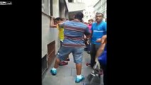 thief caught by people and got nice face kick by victim..!!!