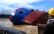 Suya indirilen gemi ufak çaplı bir tsunami etkisi yaratti. Geminin indirilişini karadan izleyen birçok insan bir anda suların içinde kaldı...