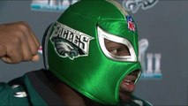 Fletcher Cox tries on Eagles wrestling mask