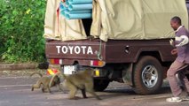 Baboons stealing car roof luggage-videosmunch