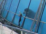 Nice-Matin, présent dans le parc Marineland mercredi matin, a pu constater que les quatre orques restantes sont regroupées dans les bassins annexes au bassin principal.