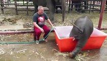 This Baby Elephant Cant Figure Out How His Bath Tub Works. And Its Adorable Double Trouble the baby elephant cant quite work out this whole personal .\r