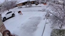 In the video, filmed last week in Michigan, US the snake is trying to consume the big amphibian, legs first.