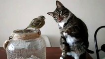 Moment magique entre un chat et un petit oiseau... Calin trop mignon