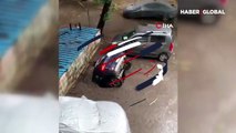Su dolu çukura saniye saniye gömülen araba kamerada