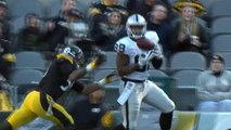 Oakland Raiders quarterback Derek Carr finds wide receiver Amari Cooper across the middle for a monster gain