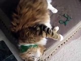 Maine Coon Cat chante avec l'hôtesse!