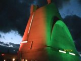 A bord de leur nacelle perchée à 32 mètres du sol, William Biwer et son fils David de la SARL Biwer de Port-sur-Saône ont procédé lundi 26 octobre 2015 (les travaux se déroulent sur la semaine) à la pause des seize projecteurs (quatre par façade) destinés à éclairer le clocher de l'église Saint-Georges à Vesoul. En outre, quatre sports seront installés à l'intérieur pour éclairer les cadrans. La vidéo de Philippe Combrousse pour La Presse de Vesoul. www.lapressedevesoul.com