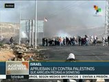 Con 51 votos a favor y 17 en contra, el Parlamento de Israel aprobó este lunes una ley contra los ciudadanos palestinos que lancen piedras a agentes de seguridad sionistas. teleSUR