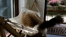 Ce chat a bien du mal à monter sur ce hamac