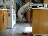 Hungry Pup Jumps into Kennel for Food