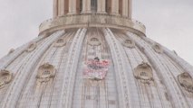 A man has climbed onto an outside ledge of Rome's Colosseum and shouted in protest at a new decree restricting sightseeing tours and rickshaw rides. Report by Cordingleyj. Like us on Facebook at http://www.facebook.com/itn and follow us on Twitter at http://twitter.com/itn