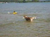 Caramel bondit dans l'eau!