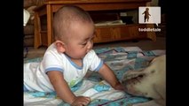 Baby gets wet kisses from puppy - Babies and Animals - toddletale
