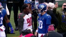 JPP hugs Eli Manning, former Giants teammates pregame