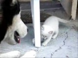 Kitten and Husky Playing