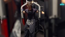 An amusing video has emerged of a man receiving a recoiling bungee cord into his back while doing exercise.