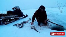The video, captured in Heilongjiang Province last week, shows the man reeling in the line only to find a big fish struggling at the end.