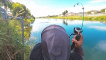 A man in China amazingly hooked a big fish out of a small ice hole with his tiny fishing rod which was only 20cm long.
