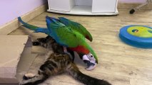 Parrot Plays With Kitty Best Friend