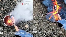 'Indonesian man cools molten lava by mixing it with water *INCREDIBLY SATISFYING*'