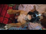 Adorable Boxer Puppy Howling With His Human Mommy..