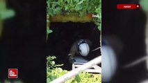 Hatay'da atık su deposuna düşen kediyi kurtaran itfaiyeci, alkışlarla karşılandı