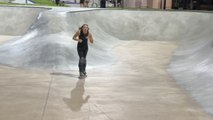Girl dives into the bowl and wraps it with a flip outside the bowl