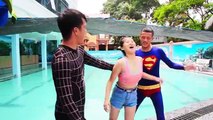 Superman PRANK Pretty Girl into POOL Joker NERF Water kidnap Elsa Love Spiderman Superhero