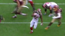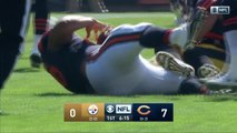 Chicago Bears linebacker Jonathan Anderson forces a fumble from Tampa Bay Buccaneers running back Doug Martin.