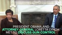Barack Obama says he will meet with attorney general Loretta Lynch on Monday to discuss executive actions he could take on reducing gun violence. Speaking during his weekly radio address, Obama says he gets so many letters from parents, teachers and children about the ‘epidemic of gun violence’, and he can not ‘sit around and do nothing’