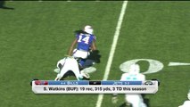 Bills Tyrod Taylor finds Sammy Watkins for a gain of 38 yards. The catch puts Watkins over 1,000 yards receiving this season.