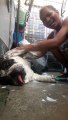 Bulldog Sleeps While Getting Scrubbed